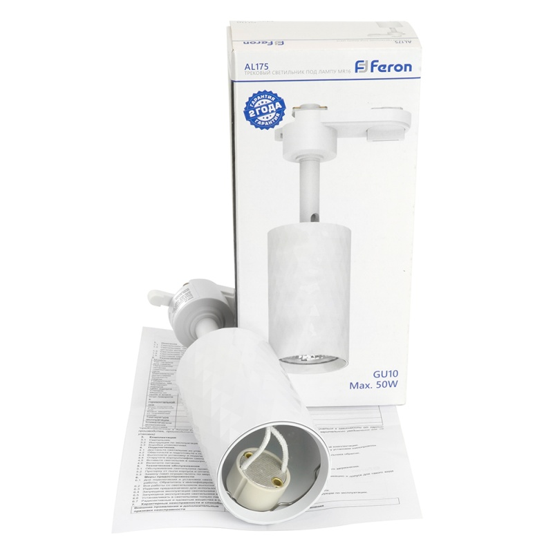 Характеристики Светильник Feron AL175 трековый однофазный на шинопровод под лампу GU10, белый