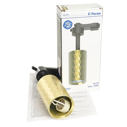 Характеристики Светильник Feron AL175 трековый однофазный на шинопровод под лампу GU10, золото