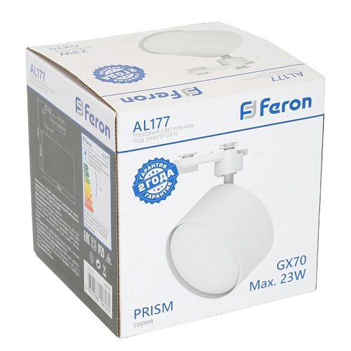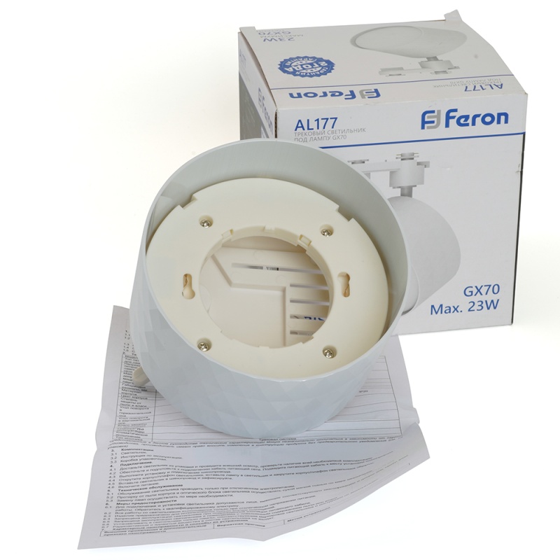 Характеристики Светильник Feron AL177 трековый однофазный на шинопровод под лампу GX70, белый
