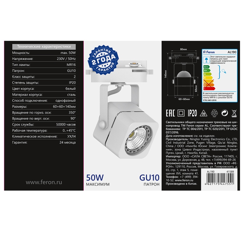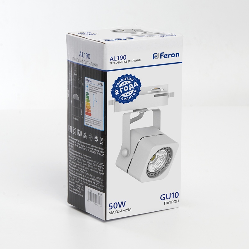 Характеристики Светильник Feron AL190 трековый однофазный на шинопровод под лампу GU10, белый