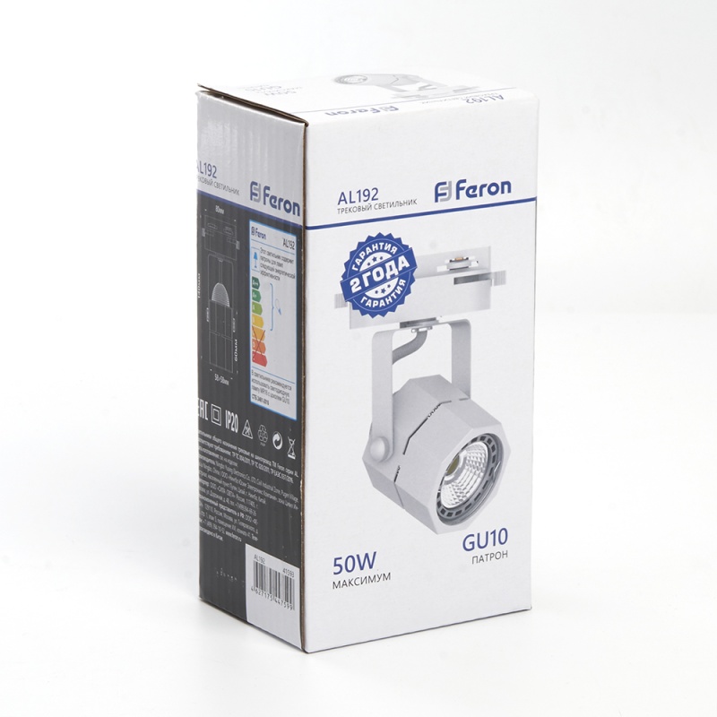 Характеристики Светильник Feron AL192 трековый однофазный на шинопровод под лампу GU10, белый