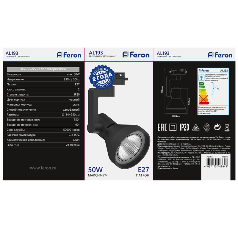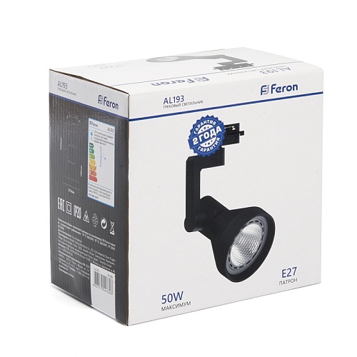 Характеристики Светильник Feron AL193 трековый однофазный на шинопровод под лампу E27, черный
