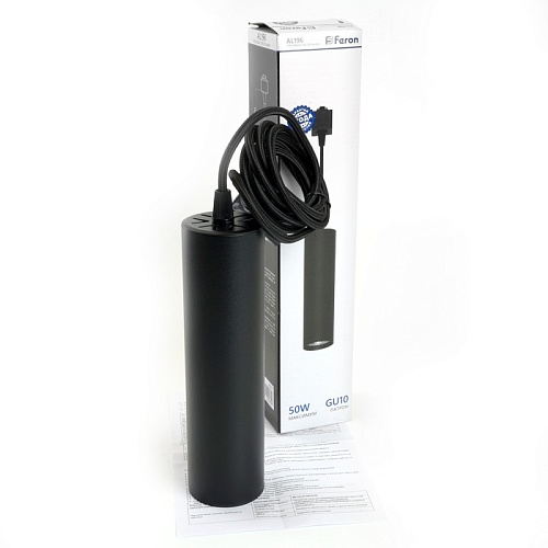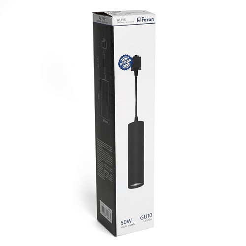 Характеристики Светильник Feron AL196 трековый однофазный на шинопровод под лампу на подвесе GU10, черный