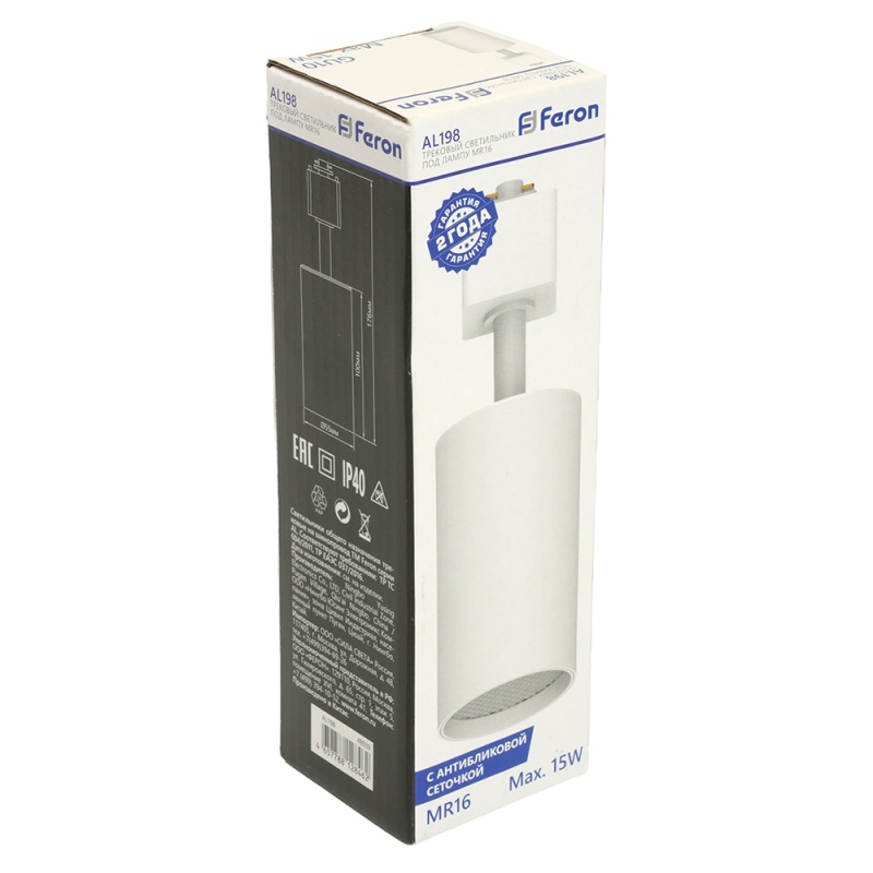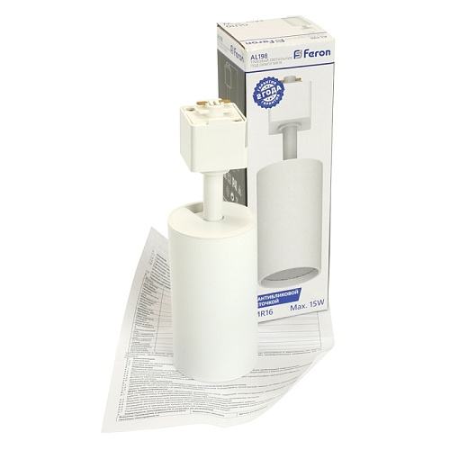 Характеристики Светильник Feron AL198 трековый однофазный на шинопровод под лампу GU10, белый с антибликовой сеточкой