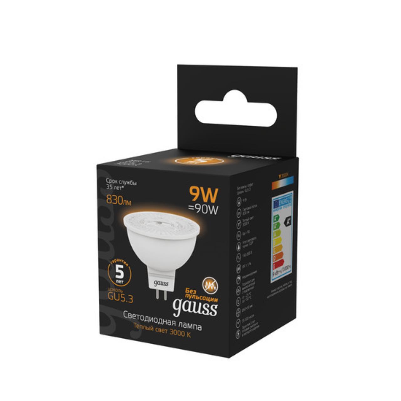 Светодиодная лампа Gauss Софит 9W 830Lm 3000K GU5.3 101505109 101505109_GAUSS