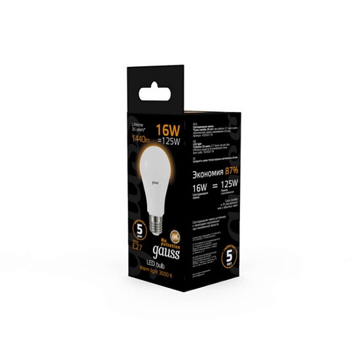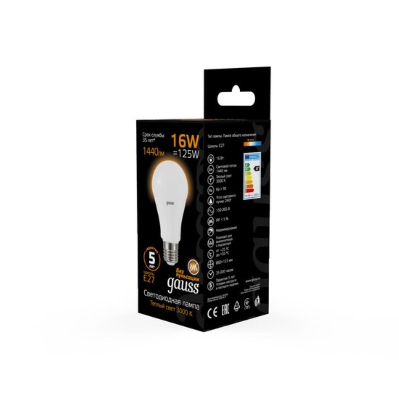 Светодиодная лампа Gauss A60 16W 1380Lm 3000K E27 102502116 102502116_GAUSS