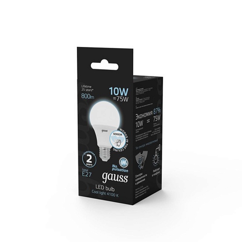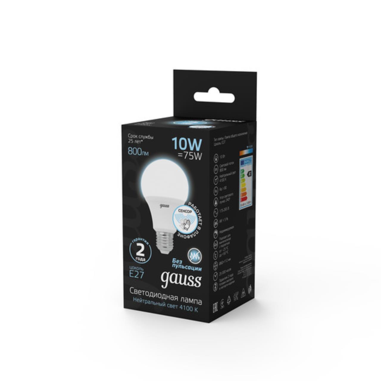 Характеристики Светодиодная лампа Gauss A60 10W 800Lm 4100K E27 102502210-M
