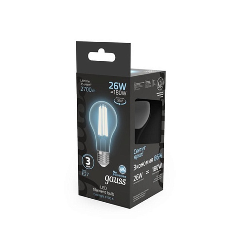 Светодиодная филаментная лампа Gauss FILAMENT A70 26W 2700Lm 4100K E27 102902226 102902226_GAUSS