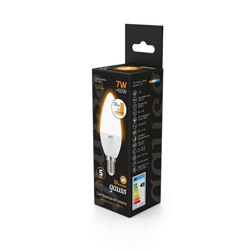 Светодиодная лампа Gauss Свеча 7W 520Lm 3000K E14 103101107-S 103101107-S_GAUSS