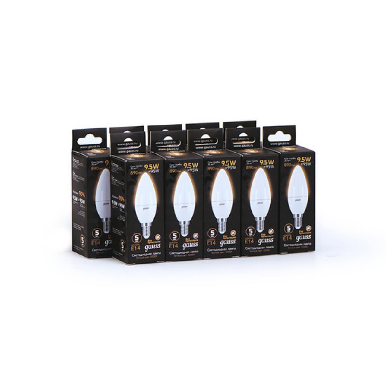 Светодиодная лампа Gauss Свеча 9,5W 890Lm 3000K E14 103101110 103101110_GAUSS