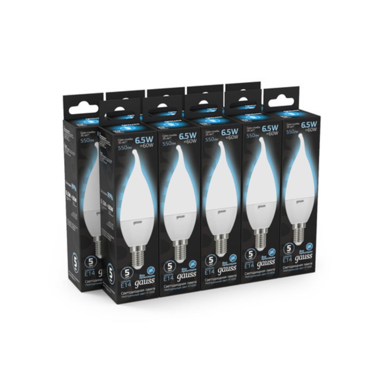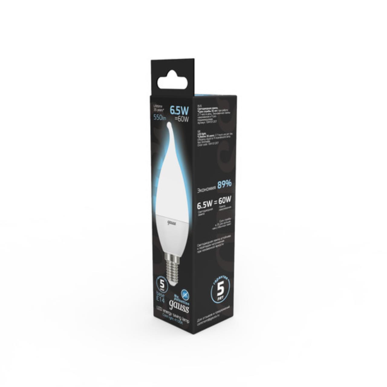 Характеристики Светодиодная лампа Gauss Свеча 6,5W 550Lm 4100K E14 104101207