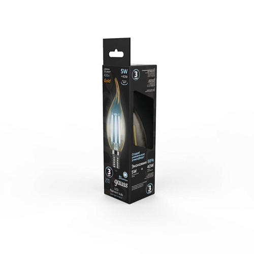 Характеристики Светодиодная филаментная лампа Gauss Свеча на ветру 5W 420Lm 4100K E14 104801805