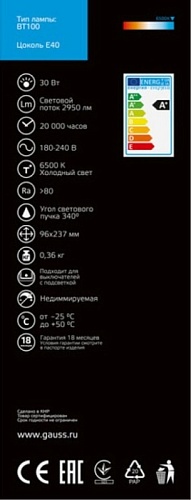 Характеристики Светодиодная лампа GAUSS 11834332_GAUSS