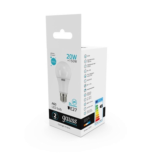 Характеристики Светодиодная лампа Gauss A60 20W 1600Lm 4100K E27 23229