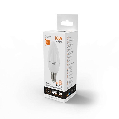 Характеристики Светодиодная лампа Gauss Свеча 10W 710Lm 3000K E14 33110