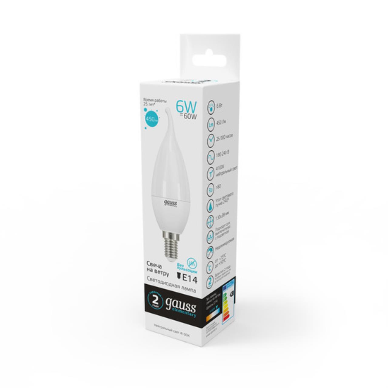Светодиодная лампа Gauss Свеча на ветру 6W 450Lm 4100K E14 34126 34126_GAUSS