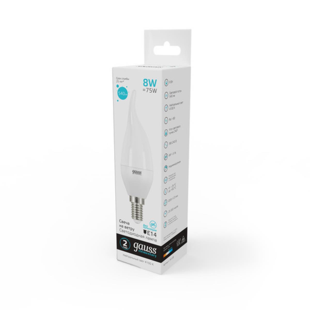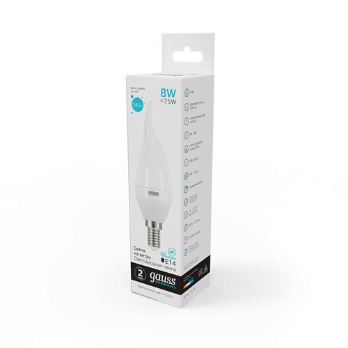 Характеристики Светодиодная лампа Gauss Свеча на ветру 8W 540Lm 4100K E14 34128