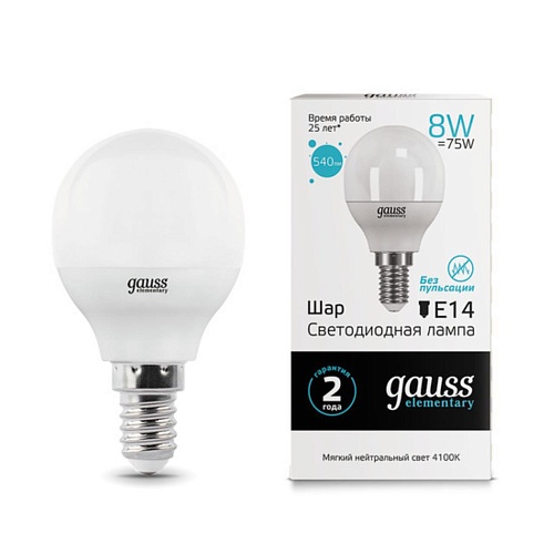 Отзывы о Светодиодная лампа Gauss Шар 8W 540Lm 4100K E14 53128