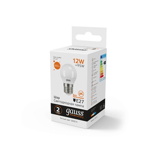 Характеристики Светодиодная лампа Gauss Шар 12W 880Lm 3000K E27 53212
