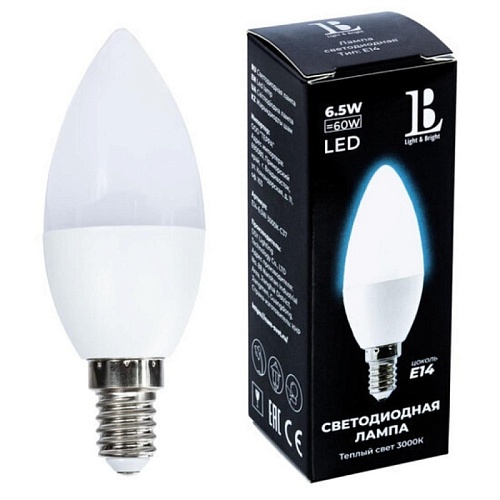Светодиодная лампа L&B E14-6,5W-3000К-C37_lb