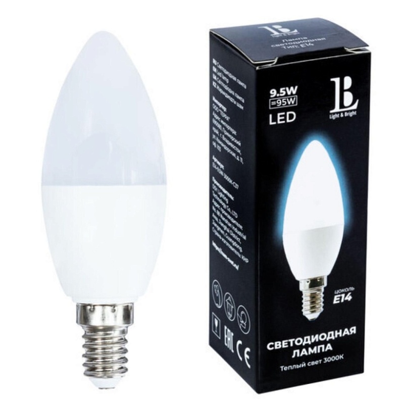 Светодиодная лампа L&B E14-9,5W-3000К-С37_lb