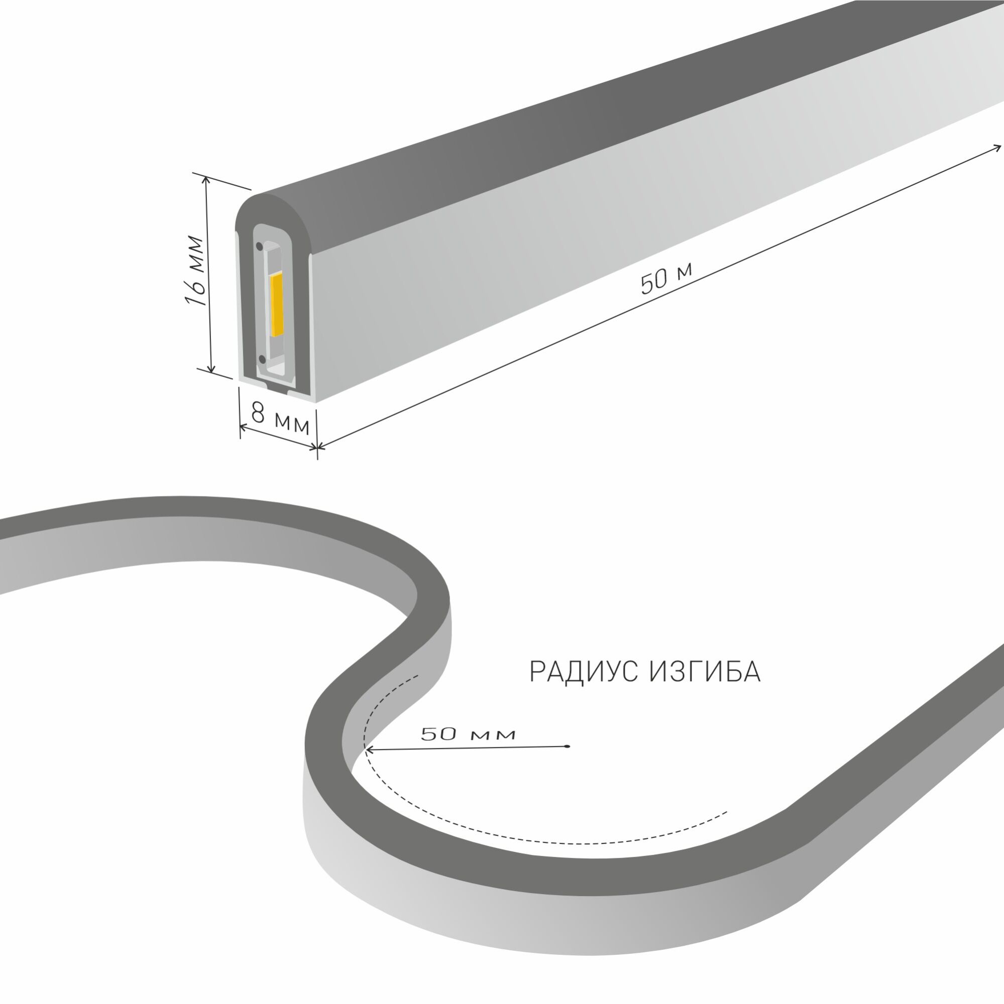 Характеристики Светодиодный гибкий неон 220 В 9.6 Вт/м 120 Led/м 2835 IP67, односторонний красный, 50 м Гибкий неон 220V 9,6W 120Led 2835 IP67 односторонний красный, 50м Elektrostandard