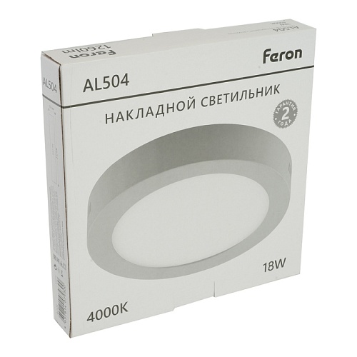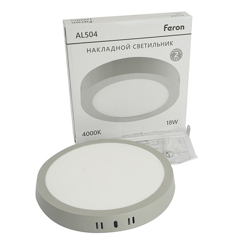 Характеристики Светодиодный светильник Feron AL504 накладной 18W 4000K серый