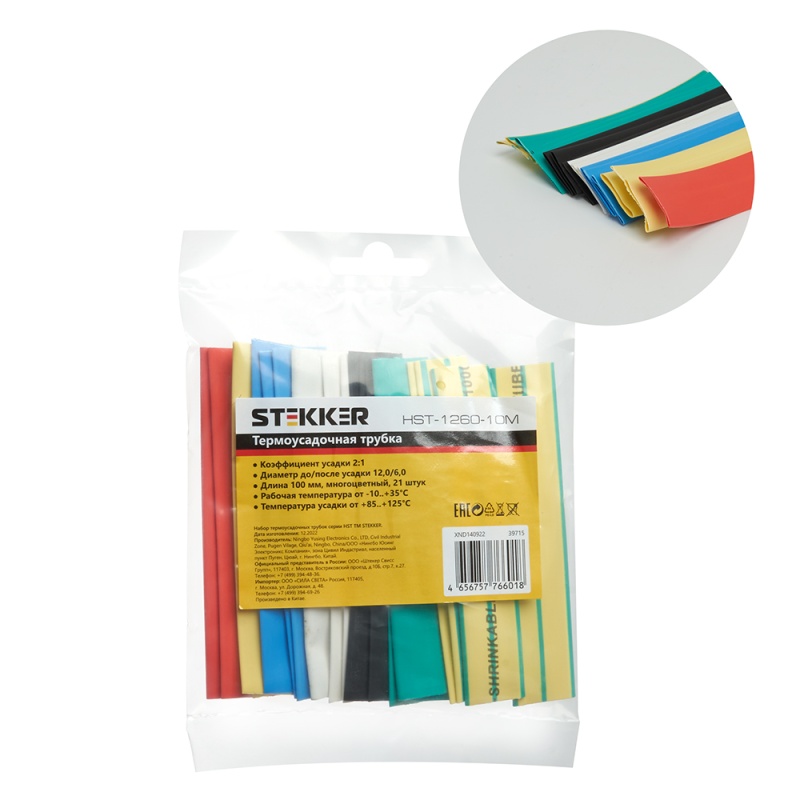 Характеристики Набор термоусадочных трубок STEKKER HSHT-1260-10M, длина 10 см., коэф. усадки 2:1, мультиколор (21шт в упаковке)
