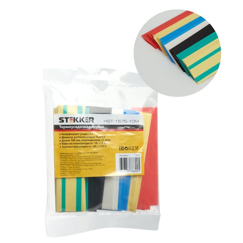 Характеристики Набор термоусадочных трубок STEKKER HSHT-1575-10M, длина 10 см., коэф. усадки 2:1, мультиколор (21шт в упаковке)