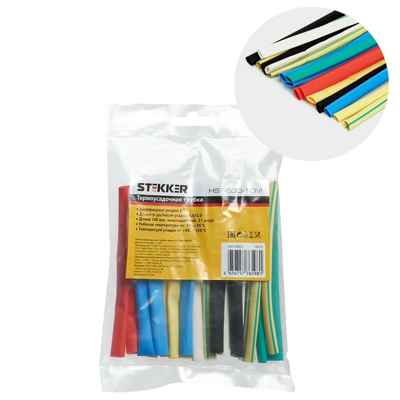 Характеристики Термоусадочная трубка STEKKER HST-2010-100M, длина 100 см., коэф. усадки 2:1, мультиколор