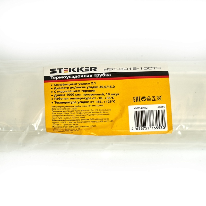 Характеристики Термоусадочная трубка STEKKER HST-3015-100TR, длина 100 см., коэф. усадки 2:1, прозрачный