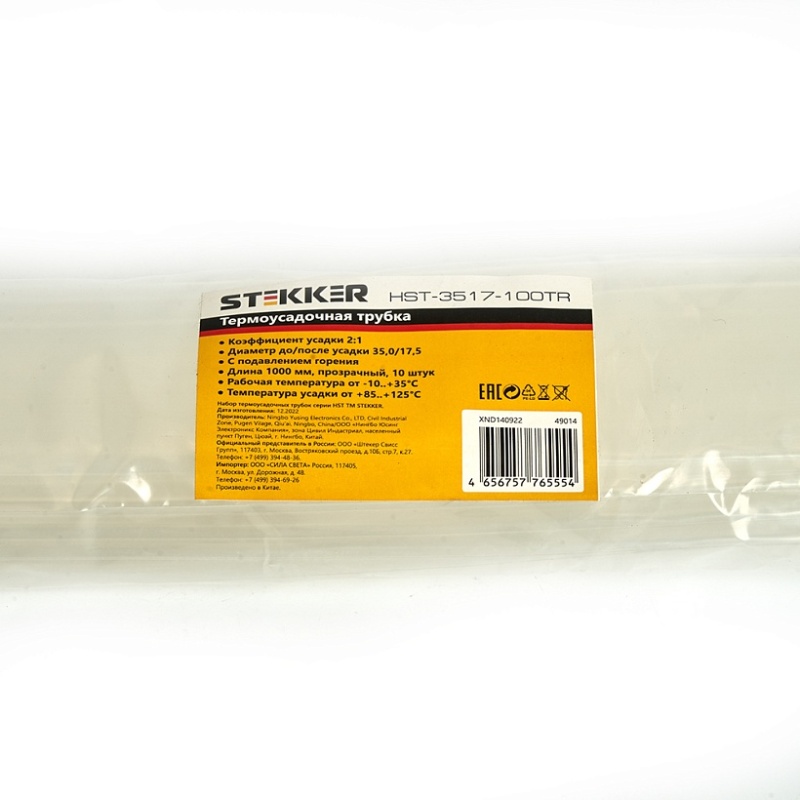 Характеристики Термоусадочная трубка STEKKER HST-3517-100TR, длина 100 см., коэф. усадки 2:1, прозрачный