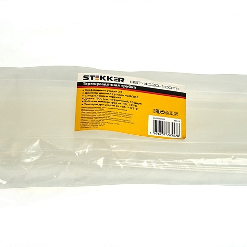 Характеристики Термоусадочная трубка STEKKER HST-4020-100TR, длина 100 см., коэф. усадки 2:1, прозрачный