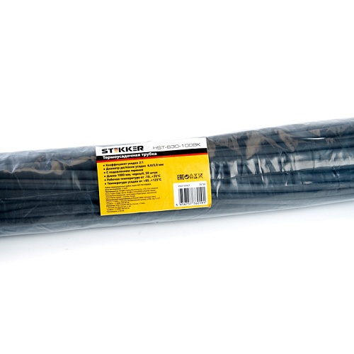 Характеристики Термоусадочная трубка STEKKER HST-630-100 BK, длина 100 см., коэф. усадки 2:1, черный