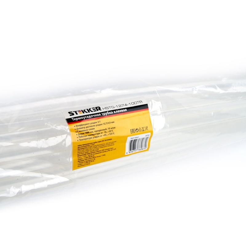 Характеристики Термоусадочная трубка клеевая STEKKER HSTG-1274-100TR, длина 100 см., коэф. усадки 3:1, прозрачный
