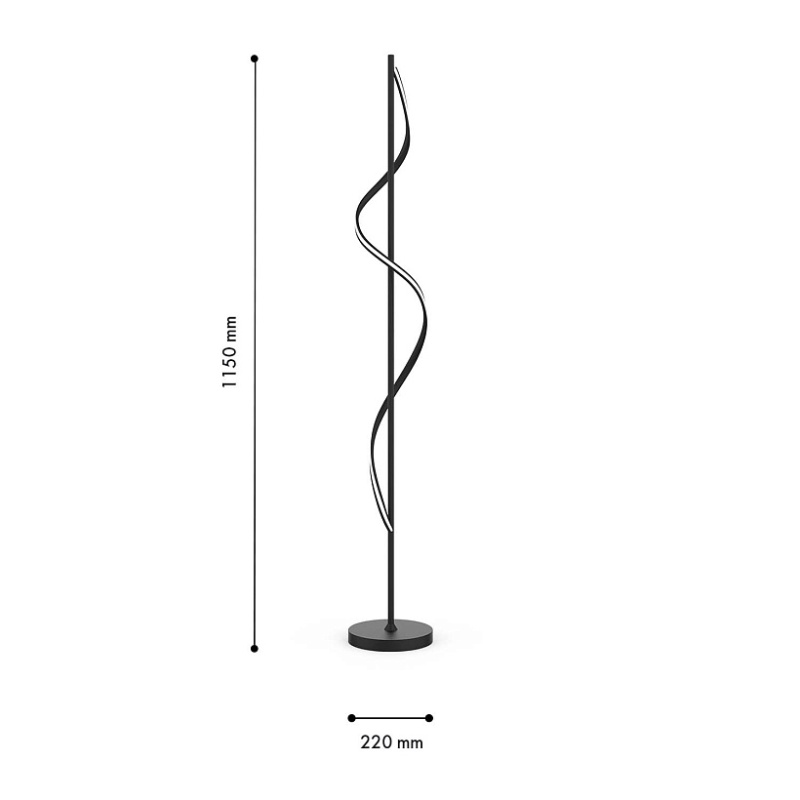 Каркас из металла черного матового цвета, рассеиватель из белого, непрозрачного акрила, прикрепленный к декоративному элементу в виде волны, встроенная LED-лента, выключатель на проводе.