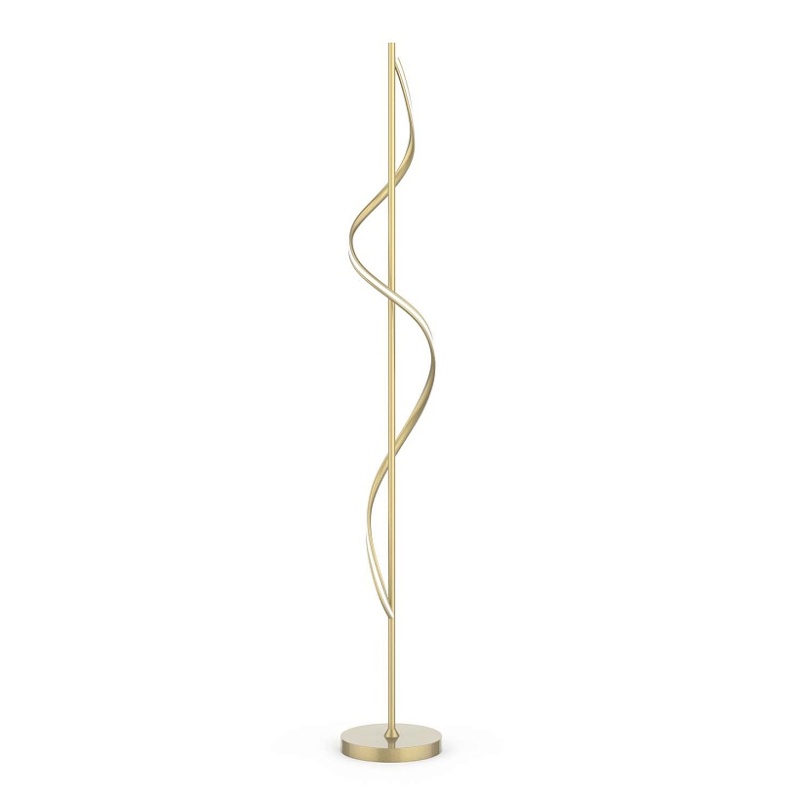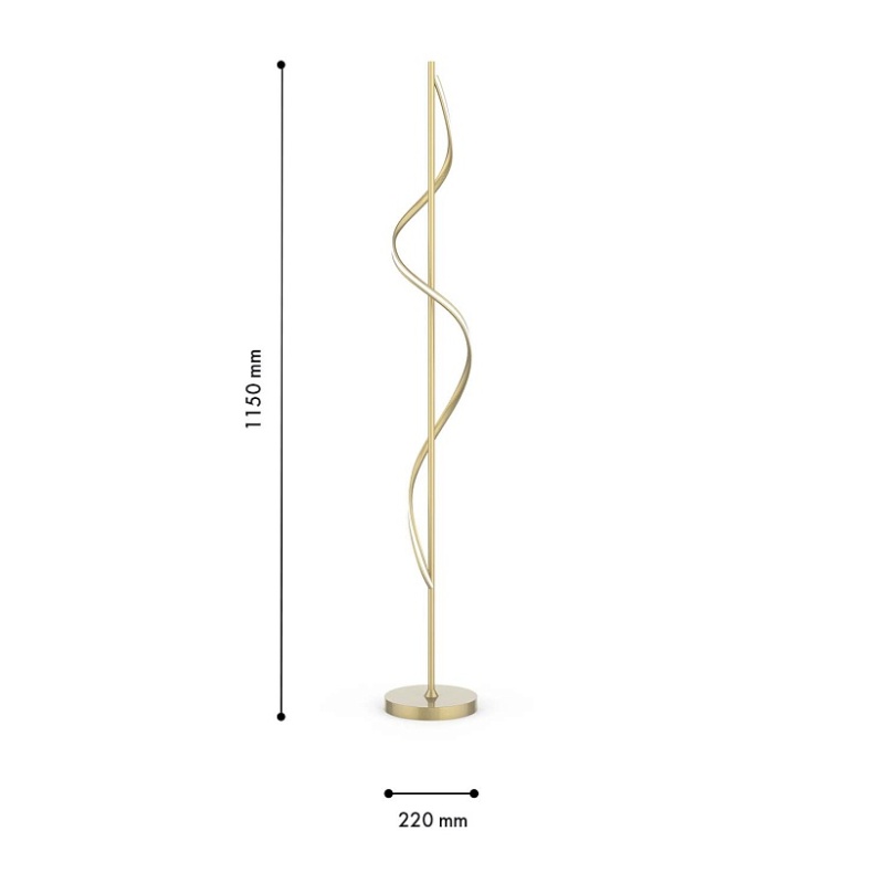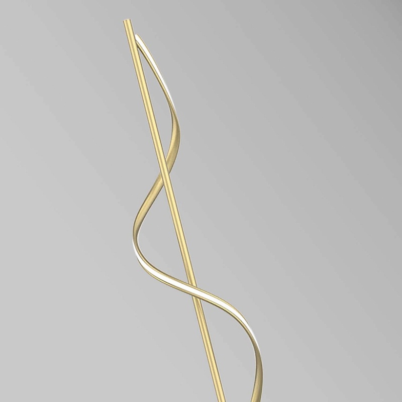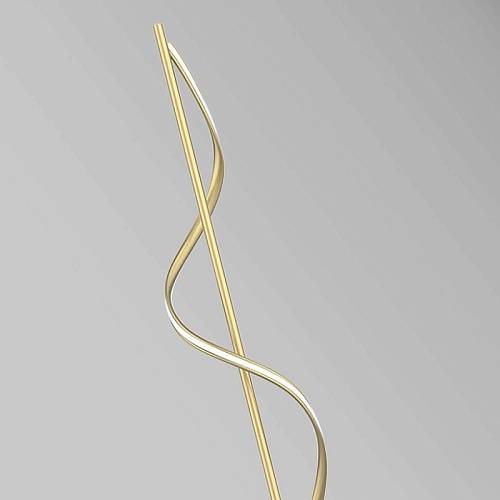 Каркас из металла матового золотого цвета, рассеиватель из белого, непрозрачного акрила, прикрепленный к декоративному элементу в виде волны, встроенная LED-лента, выключатель на проводе.