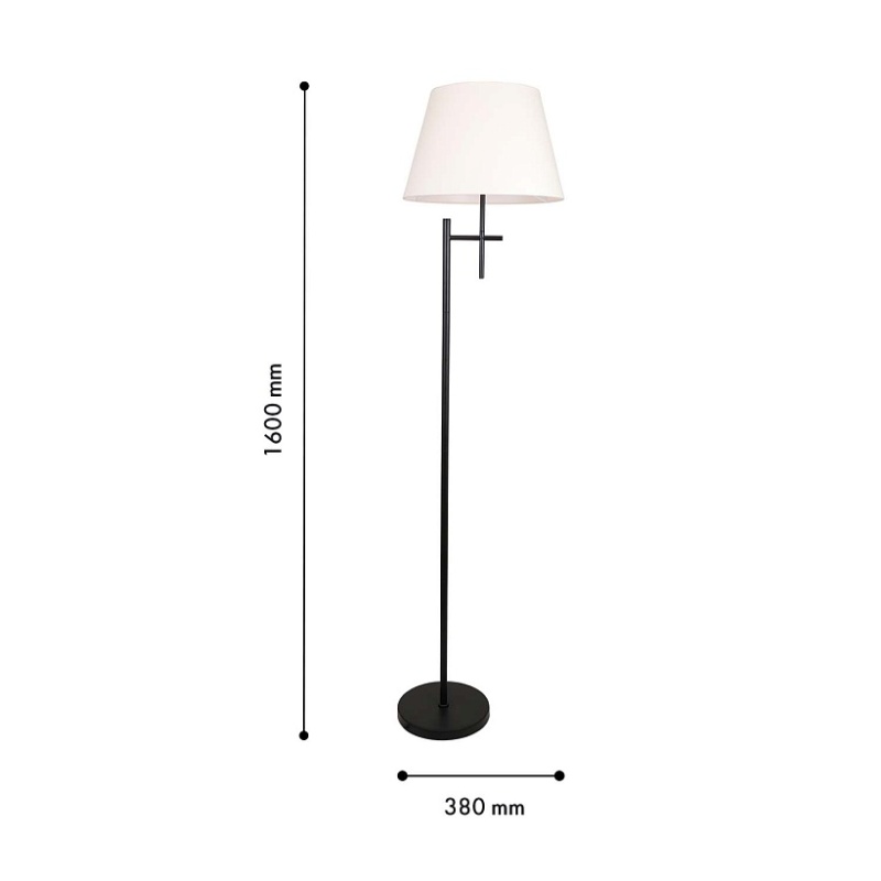 Каркас из металла черного матового цвета, белый тканевый абажур, выключатель на проводе, цоколь Е14.