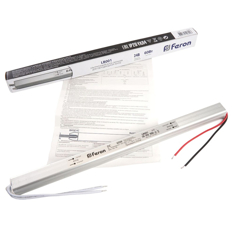Трансформатор электронный для светодиодной ленты 60W 24V ( ультратонкий драйвер), LB001 48014