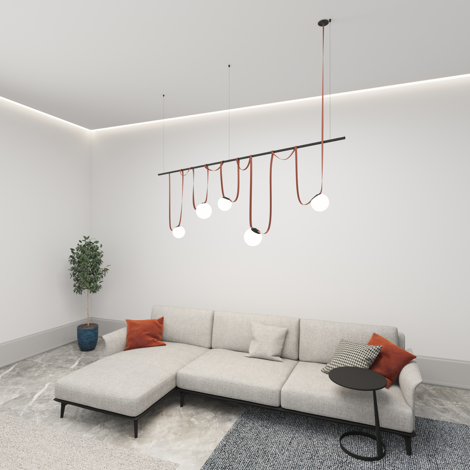 Комплект ременной трековой системы Belty. Предназначен для сборки готового светильника силами покупателя. Поставляется в наборе, состоящем из отдельных комплектующих: элементов ременной системы, блока питания и светильников. Обратите внимание - данный дизайн осветительной системы предполагает выносное размещение блока питания в электрическом щитке/лючке и тд. Необходимо обеспечить подведение низковольтного вывода питания к ременной системе. Если отсутствует возможность обеспечить низковольтный вывод питания, возможно использование модели накладного основания, предусматривающего размещение блока питания внутри себя (артикул TR5510-BK/TR5511-BK). В этом случае изменяется цена набора, а также внешний вид основания.\n\nСостав комплекта: \nTR5513-BK Встраиваемое основание BELTY BASE - 1 шт\nTR5501-DG Трек-ремень BELTY BASE- 1 шт\nTR5536-BK Крепление-зажим BELTY ROD - 9 шт\nDK5560-BK Трековый светильник BELTY FLOW - 5 шт\nTR5537-BK Подвес для штанги BELTY ROD - 3 шт\nTR5534-BK Штанга BELTY ROD - 1 шт\nTR5520-BK Наконечник BELTY BASE - 1 шт\nTR5528-AL Блок питания - 1 шт\n\nФактическая длинна ремня 10000 мм. Срок гарантии 3 года.