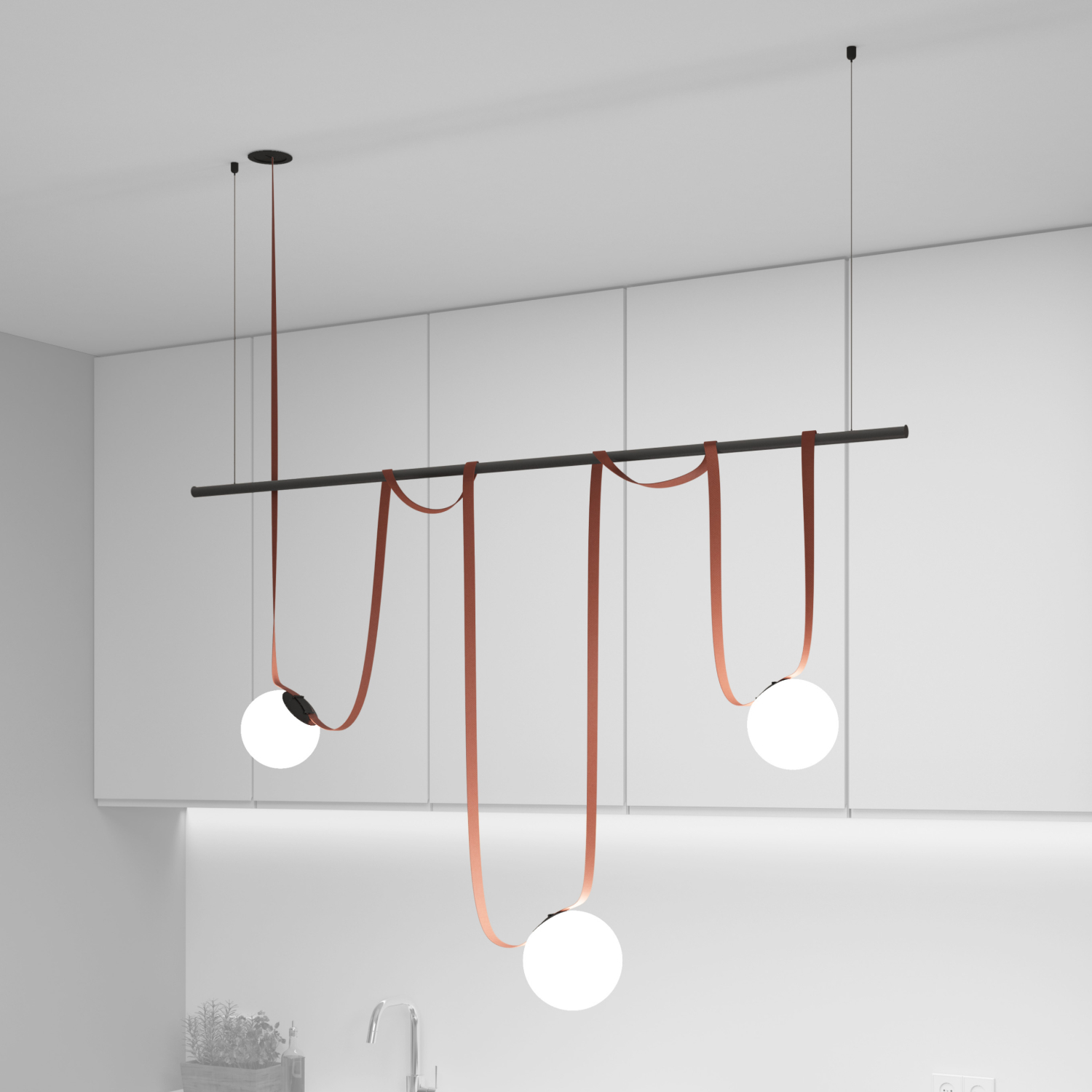Комплект ременной трековой системы Belty. Предназначен для сборки готового светильника силами покупателя. Поставляется в наборе, состоящем из отдельных комплектующих: элементов ременной системы, блока питания и светильников. Обратите внимание - данный дизайн осветительной системы предполагает выносное размещение блока питания в электрическом щитке/лючке и тд. Необходимо обеспечить подведение низковольтного вывода питания к ременной системе. Если отсутствует возможность обеспечить низковольтный вывод питания, возможно использование модели накладного основания, предусматривающего размещение блока питания внутри себя (артикул TR5510-BK/TR5511-BK). В этом случае изменяется цена набора, а также внешний вид основания.\n\nСостав комплекта: \nTR5513-BK Встраиваемое основание BELTY BASE - 1 шт\nTR5501-BR Трек-ремень BELTY BASE - 1 шт\nTR5501-BR Трек-ремень BELTY BASE- 1 шт\nTR5536-BK Крепление-зажим BELTY ROD - 5 шт\nDK5550-BK Трековый светильник BELTY ORB - 2 шт\nDK5552-BK Трековый светильник BELTY ORB - 1 шт\nTR5537-BK Подвес для штанги BELTY ROD - 2 шт\nTR5532-BK Штанга BELTY ROD - 1 шт\nTR5526-AL - 1 шт\n\nФактическая длинна ремня 5500 мм. Срок гарантии 3 года.