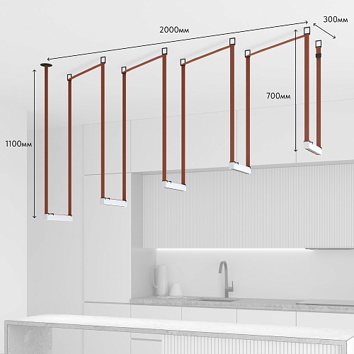 Комплект ременной трековой системы Belty. Предназначен для сборки готового светильника силами покупателя. Поставляется в наборе, состоящем из отдельных комплектующих: элементов ременной системы, блока питания и светильников. Обратите внимание - данный дизайн осветительной системы предполагает выносное размещение блока питания в электрическом щитке/лючке и тд. Необходимо обеспечить подведение низковольтного вывода питания к ременной системе. Если отсутствует возможность обеспечить низковольтный вывод питания, возможно использование модели накладного основания, предусматривающего размещение блока питания внутри себя (артикул TR5510-BK/TR5511-BK). В этом случае изменяется цена набора, а также внешний вид основания.\n\nСостав комплекта: \n TR5502-BR Трек-ремень BELTY BASE - 1 шт\n TR5518-BK Наконечник BELTY BASE - 9 шт\n TR5513-BK Встраиваемое основание BELTY BASE - 1 шт\n TR5519-BK Наконечник BELTY BASE - 1 шт\n DK5570-WB Трековый светильник BELTY GRILL - 5 шт\n TR5526-AL - 1 шт\n\nФактическая длинна ремня 13500 мм. Срок гарантии 3 года.