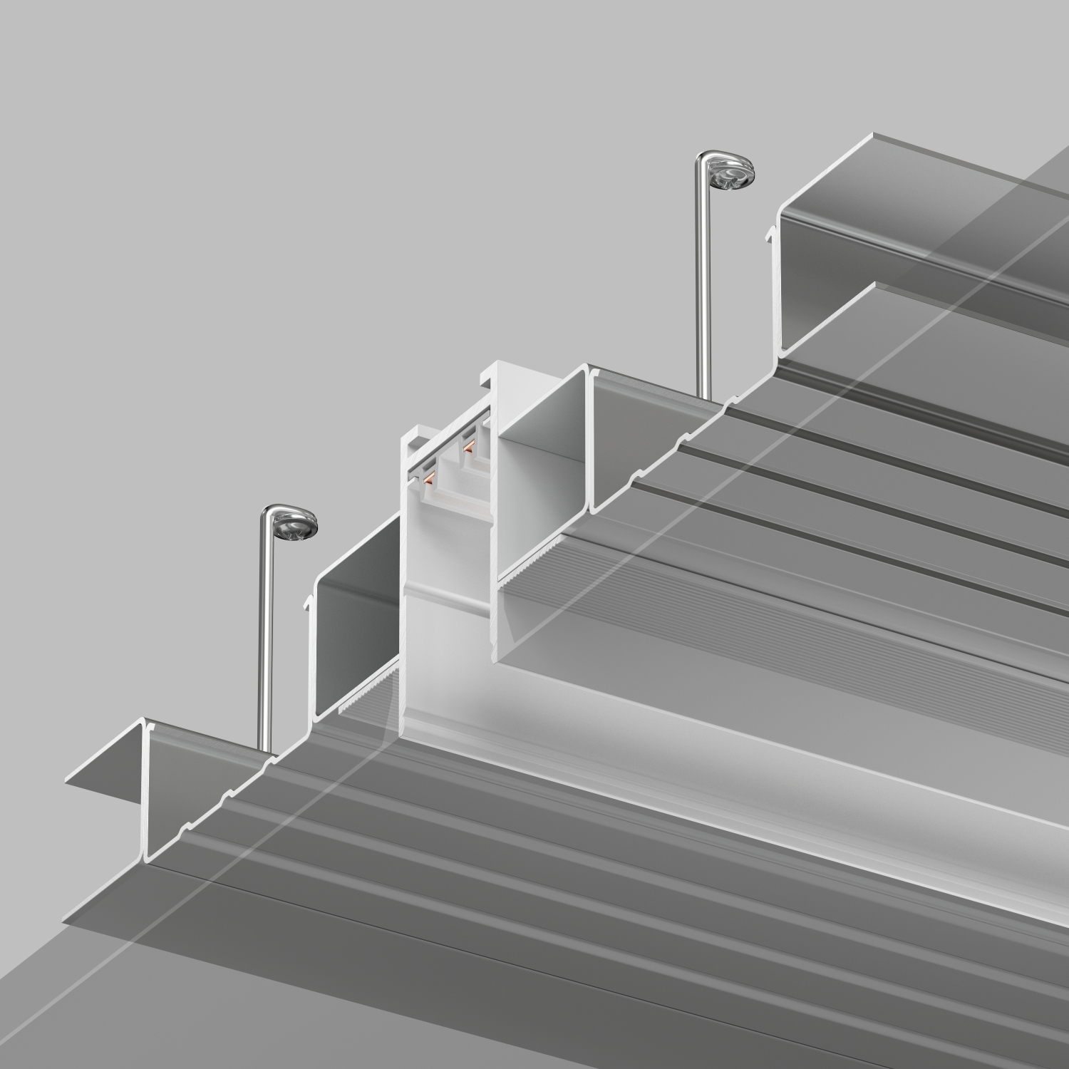 Трек системы SMART для встраиваемого монтажа в гипсокартон. Имеет специальные фланцы-упоры по всей площади, благодаря которым надежно фиксируется в материале подвесного потолка методом скрытого монтажа. Является лучшим решением для встраиваемого монтажа в гипсокартон. Торцевые заглушки идут в комплекте. Дополнительные аксессуары: подвод питания, соединительные элементы и декоративные экраны приобретаются отдельно. Шинопровод подключается к сетевому напряжению AC 220V. Драйвер и трансформатор не требуются. Для удобной и безопасной транспортировки рекомендуем использовать короб CB2020. Срок гарантии 3 года.