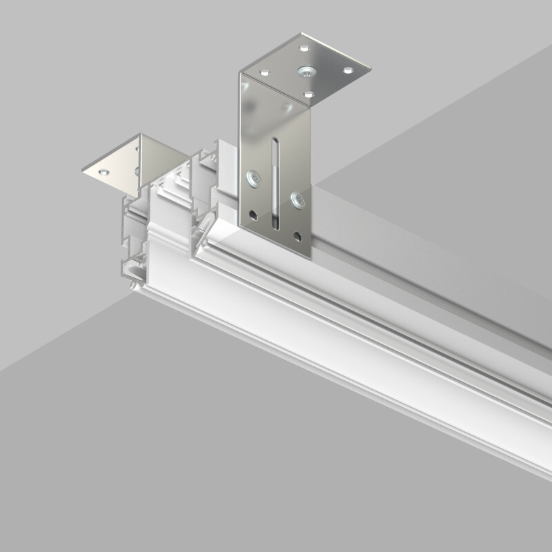 Профиль-трек 2в1: применяется для монтажа полотна натяжного потолка, а также, является треком системы SMART. Может нарезаться на отрезки произвольной длины. Внутренняя декоративная вставка, в виде двух отрезков по 3 метра, входит в комплект поставки.\nТрек-профиль SMART ONE оснащен системой крепления полотна типа Гарпун. Подходит для установки потолков из ПВХ пленки. Не требует приобретения отдельного трека для установки светильников. Подвод питания, соединительные элементы и прочие аксессуары приобретаются отдельно.\nАксессуары:\nTR3043-AL - комплект для прямого соединения двух треков.\nTR2027-AL – Комплект для соединения под углом 90 градусов (отрезки профиля предварительно необходимо торцевать под углом 45 градусов).\nTR2026-WH - Готовый угловой элемент 90 градусов, используется для упрощенного создания прямого угла совместно с двумя комплектами соединителей TR3043-AL.\nTR2025-WH – комплект торцевых заглушек, рассчитанный для обрамления двух концов трековой системы.\nTR3045-AL – Комплект монтажных уголков для монтажа профиля к черновому потолку. Позволяет легко регулировать высоту установки профиля. В комплекте: 2 уголка, крепеж. Срок гарантии 3 года.