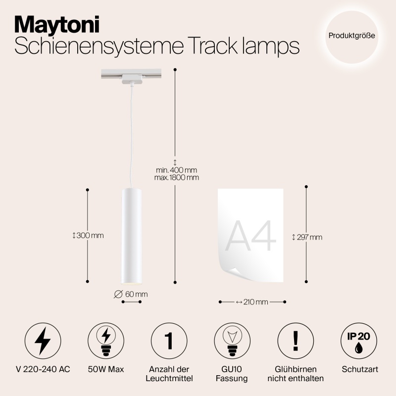 Трековый светильник Technical Track lamps TR008-1-GU10-W