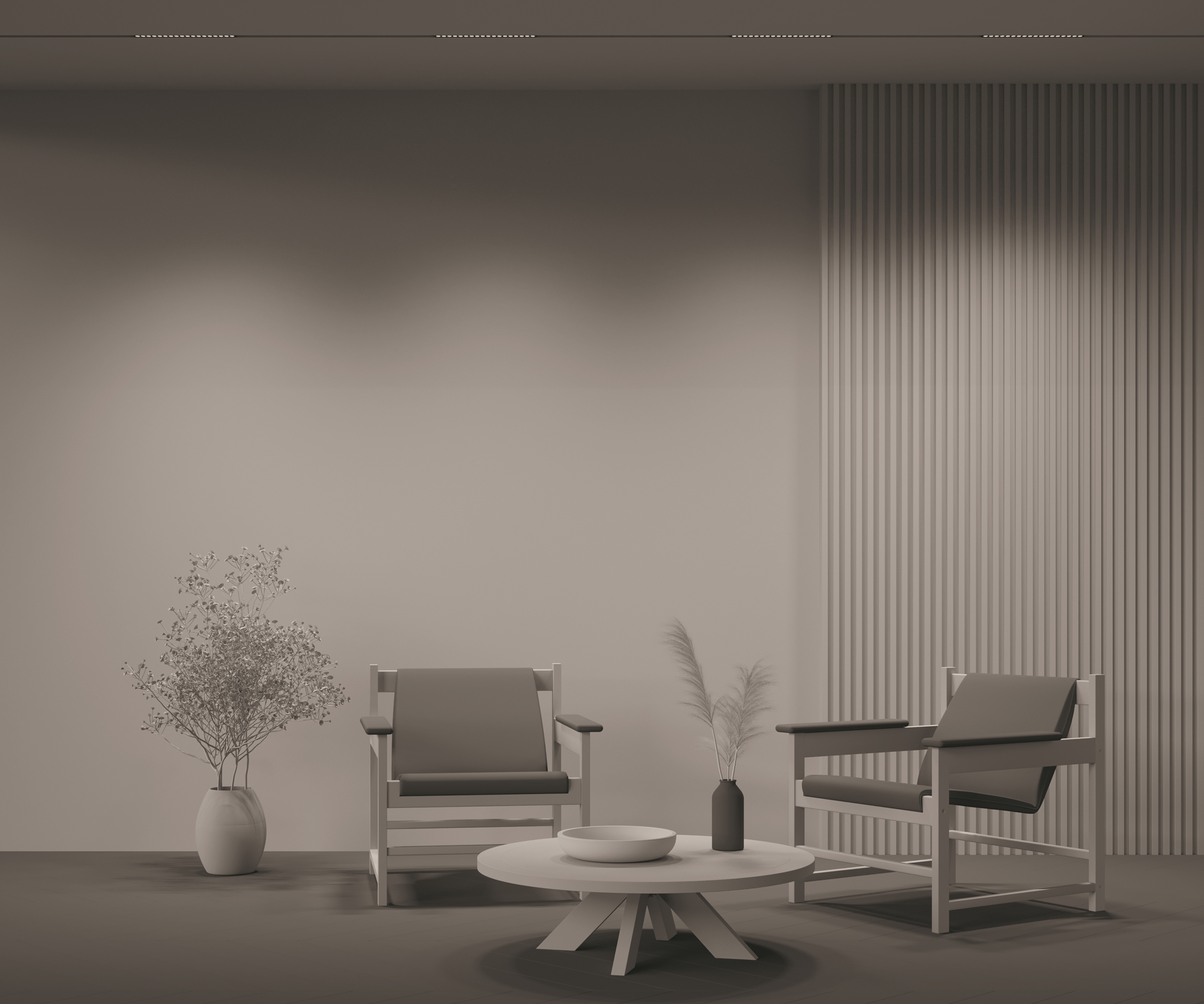 Алюминиевый корпус в черном и белом цветах. Три размера – три варианта мощности. LED-источник света. Скрытый источник света - уникальный оптический эффект "света из ниоткуда. Угол рассеивания — 36°. Цветовая температура 3000К и 4000К, а также умные модели с регулируемым диапазоном от 3000К до 6000К и диммированием по протоколу Bluetooth Mesh. Это позволяет управлять группой или отдельным светильником: вкл/выкл, диммировать, изменять цветовую температуру. Также доступно беспроводное управление светом со смартфона, пульта, с помощью голосовых помощников.
