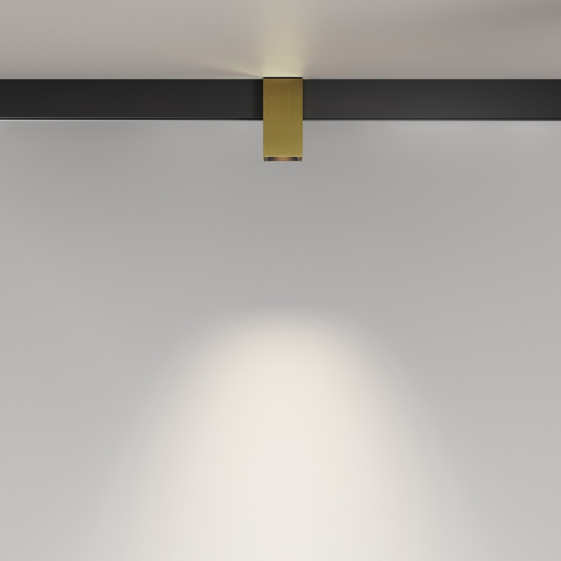 Алюминиевый корпус. Цвета - белый, черный и латунь с черным коннектором для установки в магнитный шинопровод Exility. LED-источник света. Два варианта цветовой температуры - 3000К и 4000К, а также умные светильники с регулировкой цветовой температуры от 3000 K до 6000 K и диммированием по протоколу Bluetooth Mesh. Источник света утоплен вглубь плафона для комфорта зрения. Корпус модели — форма вытянутого куба и цилиндра.