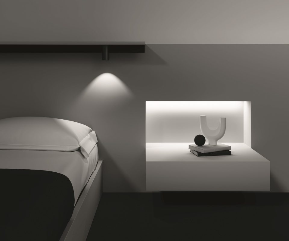 Алюминиевый корпус. Цвета - белый, черный и латунь с черным коннектором для установки в магнитный шинопровод Exility. LED-источник света. Два варианта цветовой температуры - 3000К и 4000К, а также умные светильники с регулировкой цветовой температуры от 3000 K до 6000 K и диммированием по протоколу Bluetooth Mesh. Источник света утоплен вглубь плафона для комфорта зрения. Корпус модели — форма вытянутого куба и цилиндра.