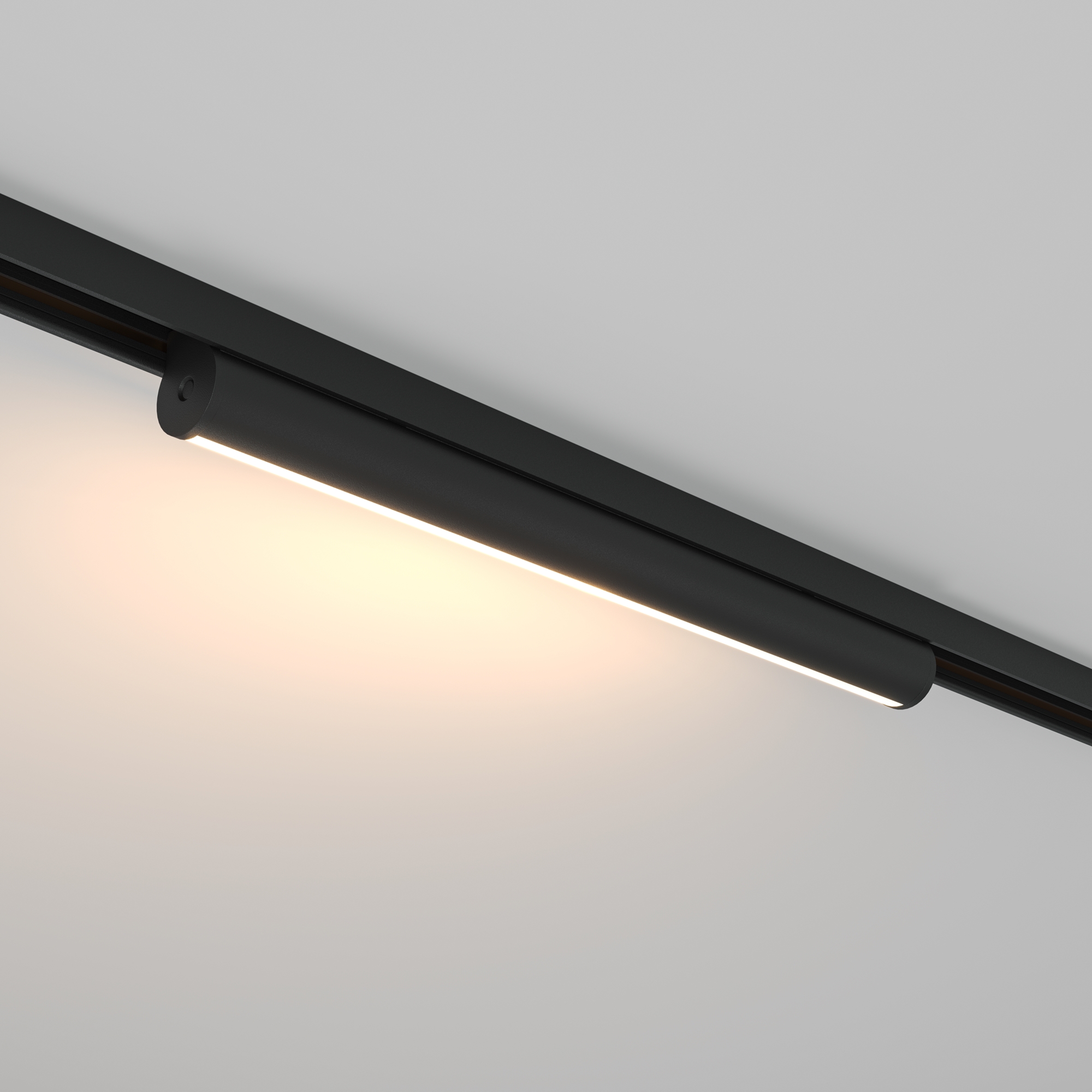 Линейный трековый светильник с корпусом из экструдированного алюминия в стильном чёрном цвете. Рассеиватель из матового поликарбоната обеспечивает равномерный свет и визуальный комфорт. Достаточная мощность светильника позволяет использовать модель в качестве основного освещения. При использовании стандартных блоков питания без функции управления, светильники при установке в трек одной стороной имеют цветовую температуру 3000K, а при установке другой стороной – 6000К. Светильники поддерживают функцию группового диммирования и регулировки цветовой температуры при использовании блоков питания по протоколам Bluetooth Mesh или DALI. Светильники данной серии совместимы с трековой системой Basity.