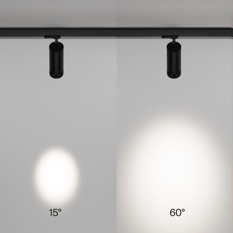 Светильник с регулируемым углом рассеивания света предлагает возможность настройки угла освещения для создания различных эффектов освещения. Металлический корпус доступен в двух базовых цветах — черном и белом. Регулировка угла рассеивания света выполняется в диапазоне от 15° до 60° с помощью специального кольца на корпусе, что позволяет удобно выставлять акценты в интерьере или создавать широкий угол освещения. Поворотный механизм позволяет регулировать направление корпуса 355° в горизонтальной плоскости, 90° - в вертикальной.Светильники оснащены встроенным LED-источником света с высоким индексом цветопередачи CRI>90 и предлагают два варианта цветовой температуры: 2700K и 4000K.
